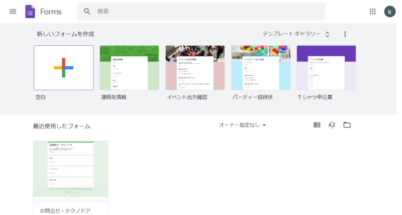 今回はオリジナルのフォームを作成するために、空白をクリックします。