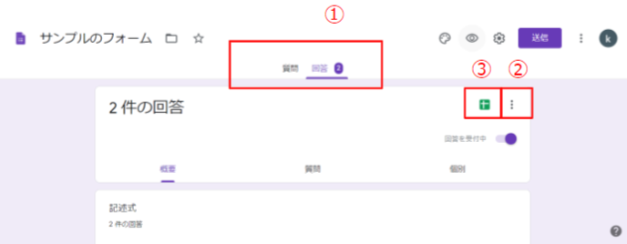 以降、回答データが作成されたスプレッドシートの中にもたまっていきます。