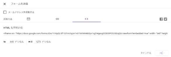一番右の<>をクリックします。出てきたコードをコピーします。